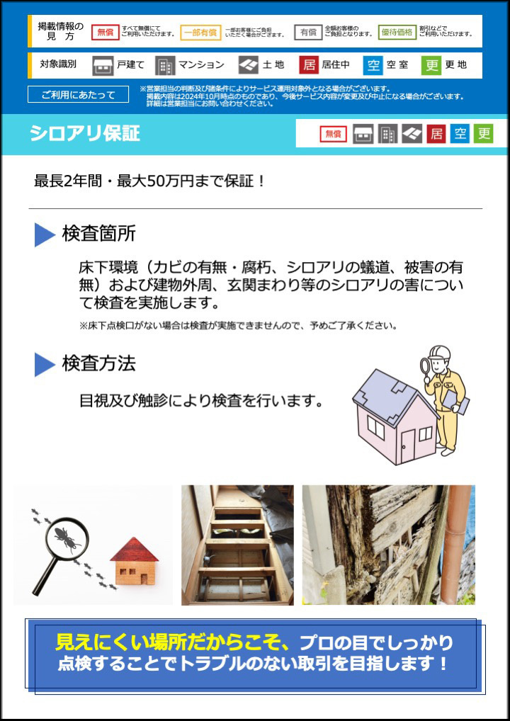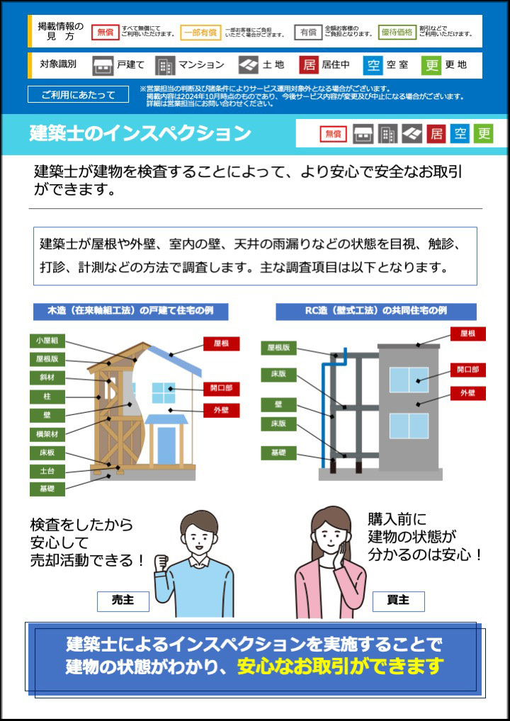 購入者の建物への不安を解消し、トラブルを回避します。