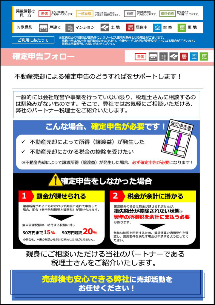 物件を売却するために必要なフォローをご提供します。